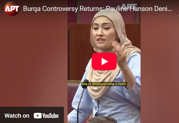 P.S. The shy young woman in Muslim attire that can be seen in the photograph reproduced in the Greek newspaper Kathimerini is an Australian politician in the country’s Senate. In the original video coverage she speaks quite loudly and vehemently in a broad Australian accent which seems ill-suited with her clothing (she is not, like Senator Hanson, engaged in theatre. How many women dressed in that way speak like that in public to an uncomfortable audience?). I think we would not like to see such scenes in the Greek parliament and would not like to see an entire legislative body reacting in such an intimidated, awkward and unworthy manner to the incident provoked by Senator Hanson’s play acting.